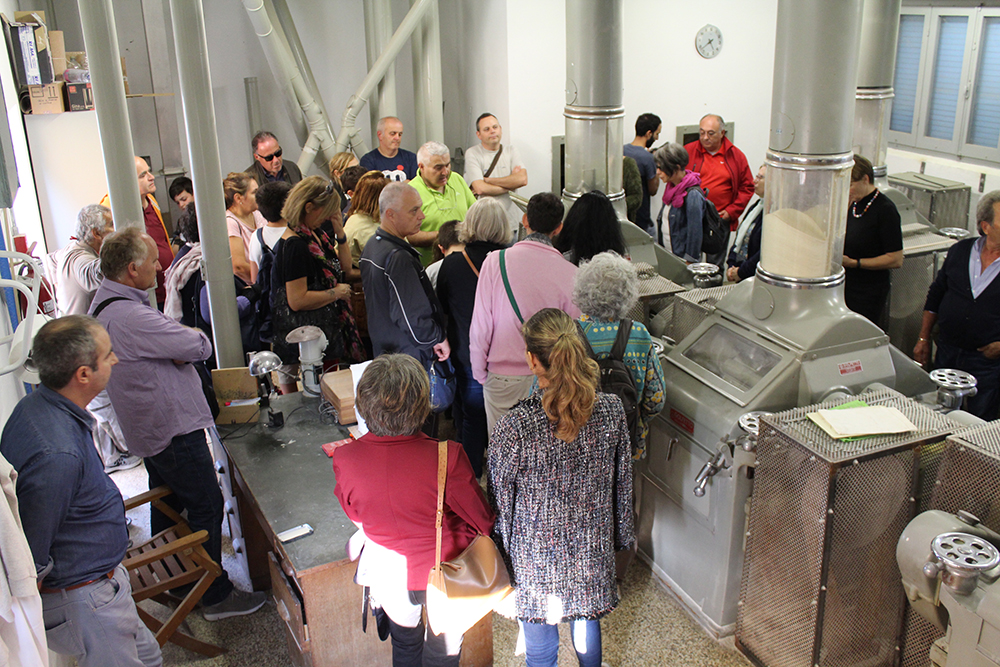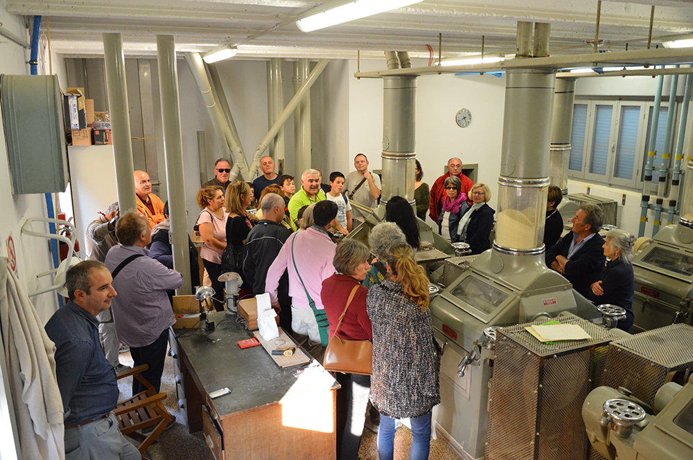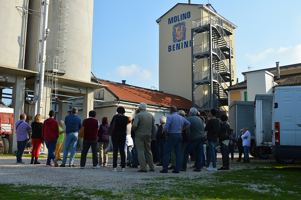 Domenica 14 ottobre al Molino Benini di S.Stefano di Ravenna hanno partecipato alla visita guidata oltre 120 persone che hanno avuto occasione di conoscere il processo di lavorazione della farina e nello stesso tempo hanno ascoltato le letture del vice direttore del Museo Diocesano di Faenza, Prof. Giovanni Gardini.