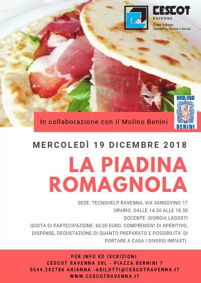 Mercoledì 19 Dicembre vi aspettiamo alla Tecnohelp di ravenna per un corso dedicato alla regina della cucina romagnola: la Piadina.
