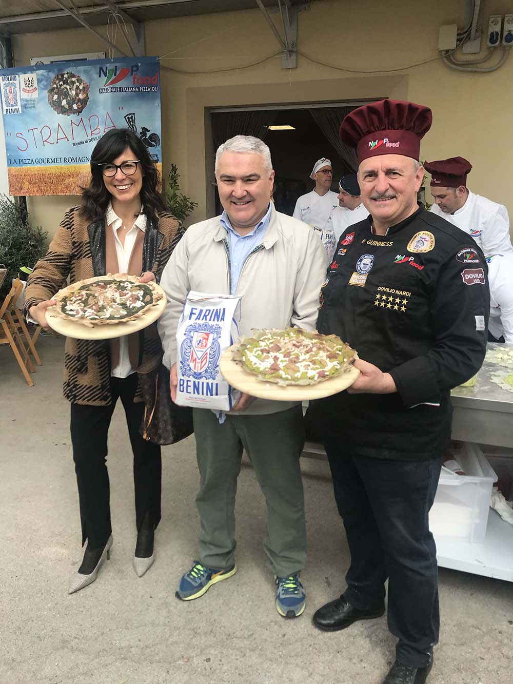 Grandissimo successo al Molino Benini per la presentazione di STRAMBA, la pizza interamente romagnola creata con la ricetta del W. Masterchef di NIPfood Dovilio Nardi e la farina del Molino Benini.