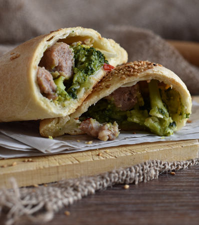 In questo periodo dell’anno c’è una grande varietà di broccoli in commercio. Per chi come nella mia famiglia nutre una gran passione per questo alimento è inevitabile prepararli in qualsiasi modo. Un esempio sono i calzoni ripieni al forno con broccoli e salsiccia. Nell’impasto c’è pochissimo lievito e il ripieno non ha olio o grassi aggiunti al di fuori di quelli contenuti nella salsiccia. I calzoni sono sfiziosi e gustosi, perfetti mangiati tiepidi ma anche una volta raffreddati non sono niente male!
