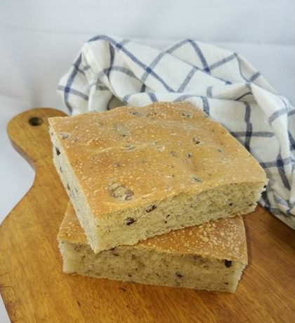 In una planetaria impastare la farina, con il latte e l’acqua. Aggiungere poi il lievito compresso e lo zucchero. Dopo 5 minuti aggiungete il sale. Appena è stato assorbito aggiungete l’olio evo. A fine impasto aggiungete le olive taggiasche tritate grossolanamente. La lavorazione dell’impasto va terminata a mano per dare una forma rotonda al composto. Fatelo lievitare in un contenitore alto, stretto e precedentemente unto finchè non raddoppia di volume. Stendete l’impasto in una teglia e lasciatelo lievitare. Cuocere in forno preriscaldato a 200° per 15 – 20 min circa.